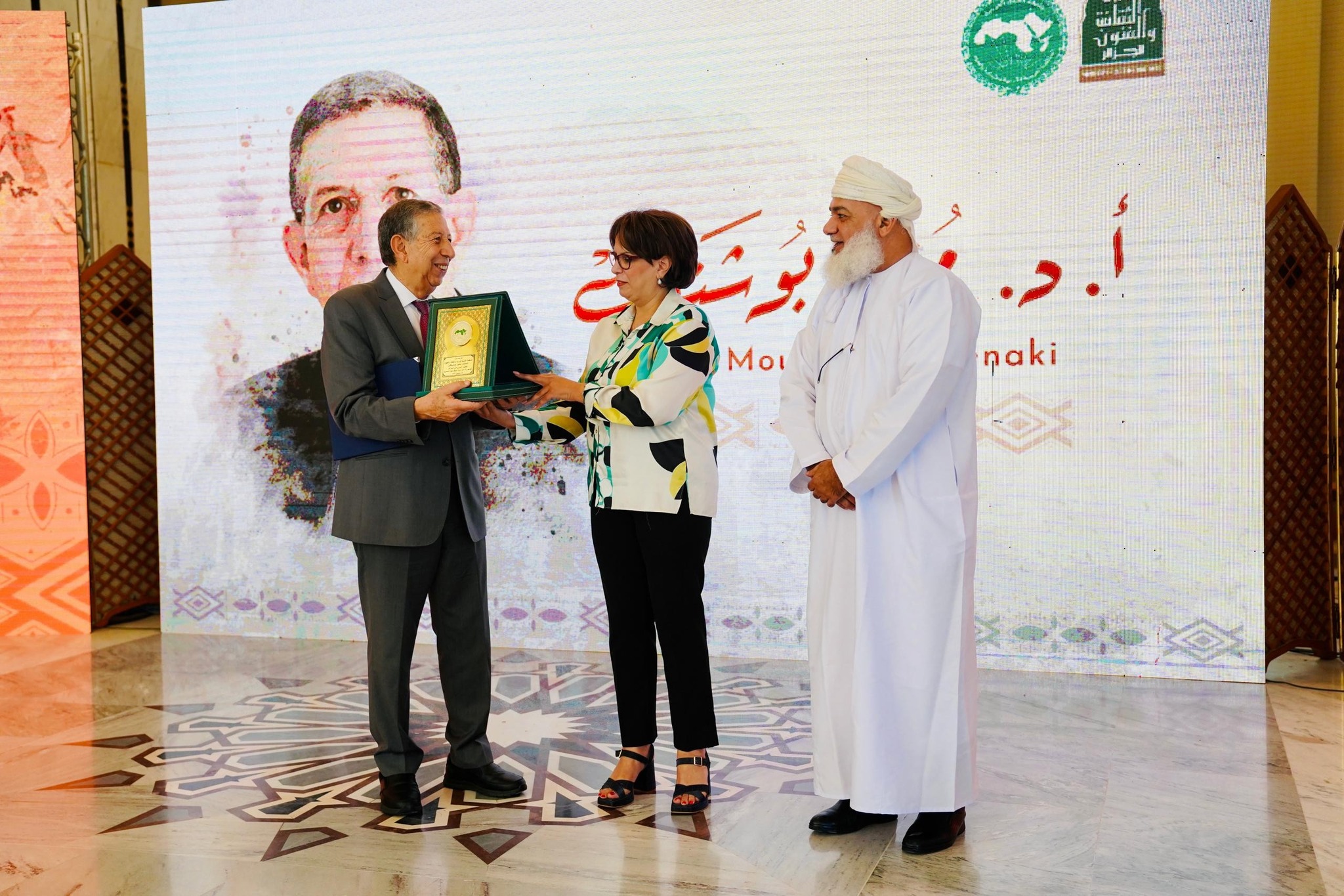 لتشرف السيدة الوزيرة بعد ذلك، رفقة الدكتور حميد النوفلي، مدير إدارة الثقافة بالألكسو، على تكريم البروفيسور منير بوشناقي القامة العلمية والفكرية الرفيعة، الذي كرس جهوده للحفاظ على الهوية الثقافية للأمة العربية وصون تراثها المادي وغير المادي، مؤكدين أن هذا التكريم يمثل اعترافا بالجهود الجزائرية والعربية المستمرة في الدفاع عن التراث وتعزيز مكانة الثقافة العربية عالمي