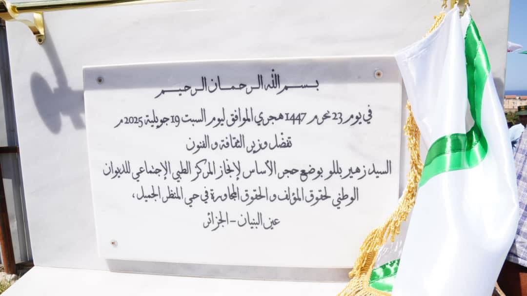في خطوة نوعية تعكس التزام الدولة بتحسين ظروف الرعاية الصحية والاجتماعية للفنانين، أشرف وزير الثقافة والفنون السيد "زُهير بٓللو"، يوم السبت 19 جويلية 2025، على وضع حجر الأساس للمركز الطبي والاجتماعي لفائدة الفنانين، التابع للديوان الوطني لحقوق المؤلف والحقوق المجاورة، وذلك بحضور السيد "محفوظ بوزرطيط" الوالي المنتدب للمقاطعة الإدارية للشراقة، إلى جانب إطارات الديوان، وعدد من كبار الفنانين والمبدعين.