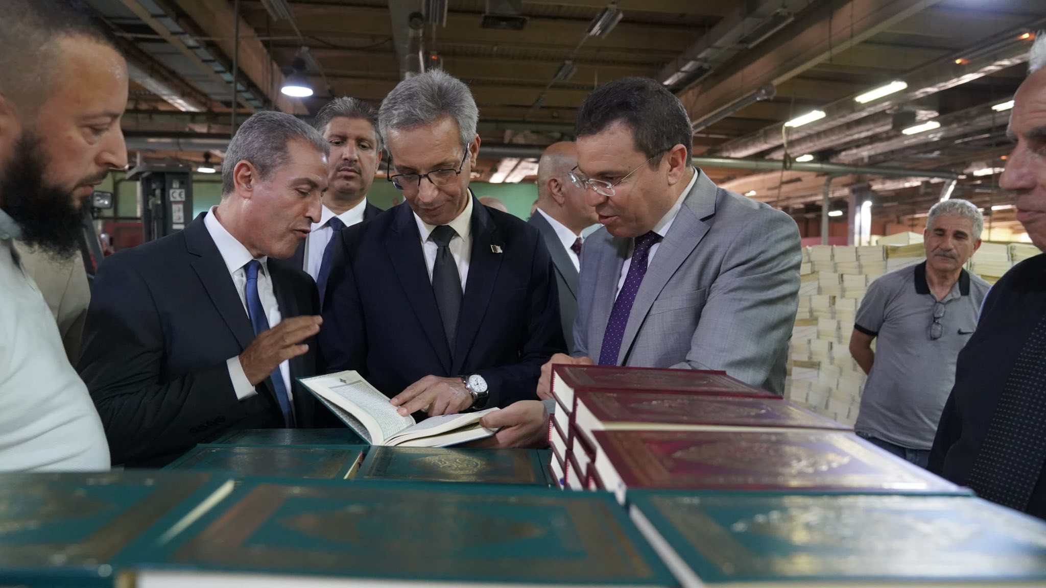 وخلال جولته عبر الورشات الإنتاجية، عاين الوزير مراحل العملية الجارية بخصوص طباعة المصحف الشريف والكتب المدرسية، واطلع على سلسلة التجهيزات الحديثة التي تمتلكها المؤسسة، بما في ذلك آلات أوفست رباعية الألوان، مكابس دوارة، وخطوط تجميع وتجليد متطورة، والتي تمكن المؤسسة من تحقيق طاقة إنتاجية تصل إلى 12 مليون كتاب سنويا، إلى جانب قدرة توزيع وتسويق تقارب 700 ألف نسخة عبر الوطن.