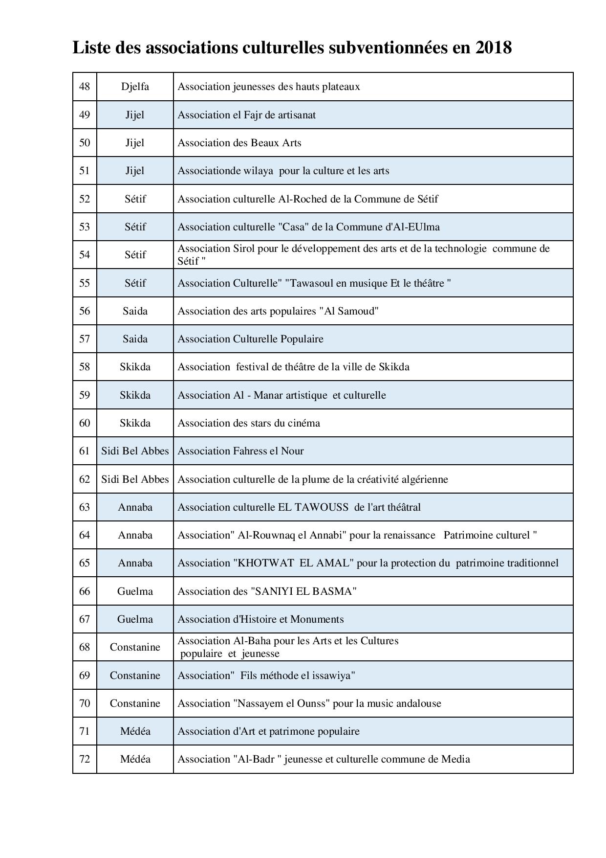 suite de la liste des associations culturelles subventionnées en 2018