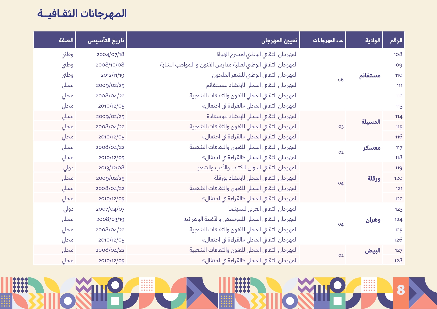 المهرجانات الثقافية المرسمة