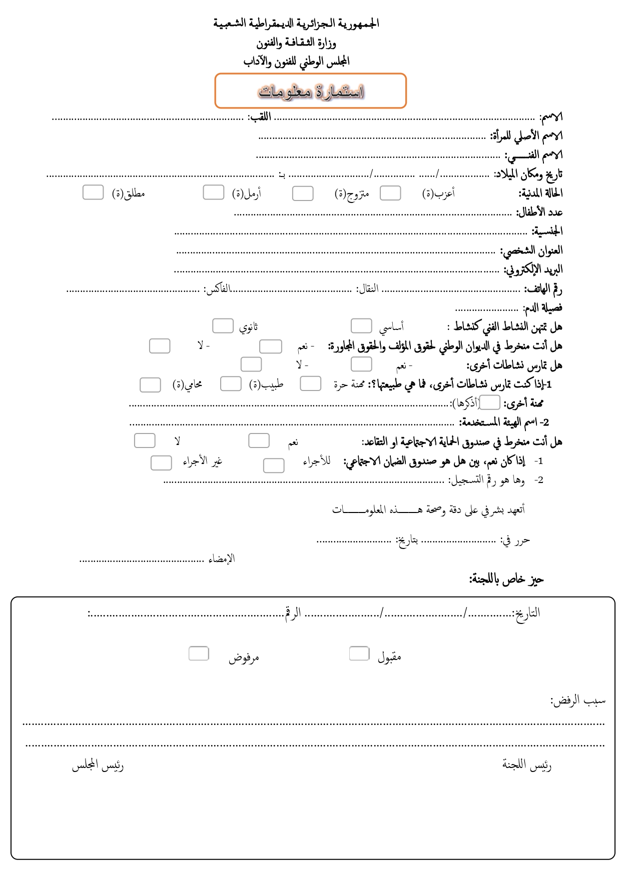 تحميل استمارة المعلومات