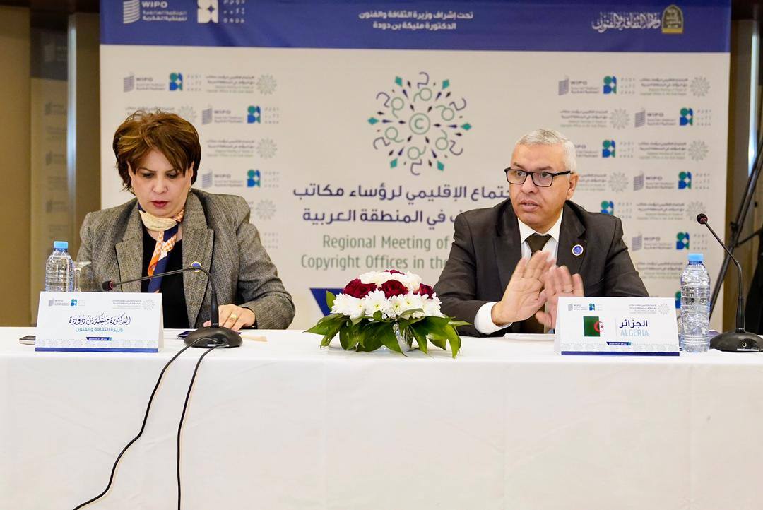 في إطار مقاربة وزارة الثقافة والفنون الرامية إلى تعزيز مكانة الجزائر في فضائها العربي والدولي، ودعم آليات التعاون في مجال الملكية الفكرية، أشرفت وزيرة الثقافة والفنون السيدة مليكة بن دودة، صبيحة اليوم، بفندق الماريوت – باب الزوار بالجزائر العاصمة، على افتتاح الاجتماع الإقليمي لرؤساء مكاتب حق المؤلف في المنطقة العربية، المنظم بالتعاون بين الويبو والديوان الوطني لحقوق المؤلف والحقوق المجاورة أوندا.
