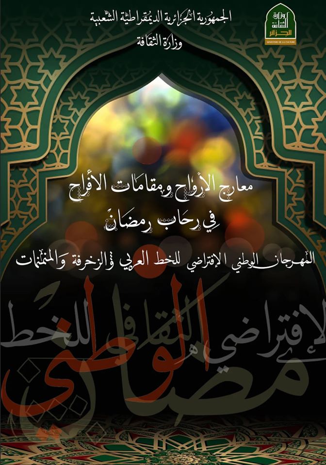 بإشراف من وزيرة الثقافة السيدة مليكة بن دودة، تُعطى يوم الثلاثاء 12 ماي 2020، بمقر وزارة الثقافة بهضبة العناصر بالعاصمة، بدءا من الـ11 صباحا، إشارة انطلاق الطبعة الأولى للمهرجان الوطني الثقافي الافتراضي للخط العربي والزخرفة والمنمنمات