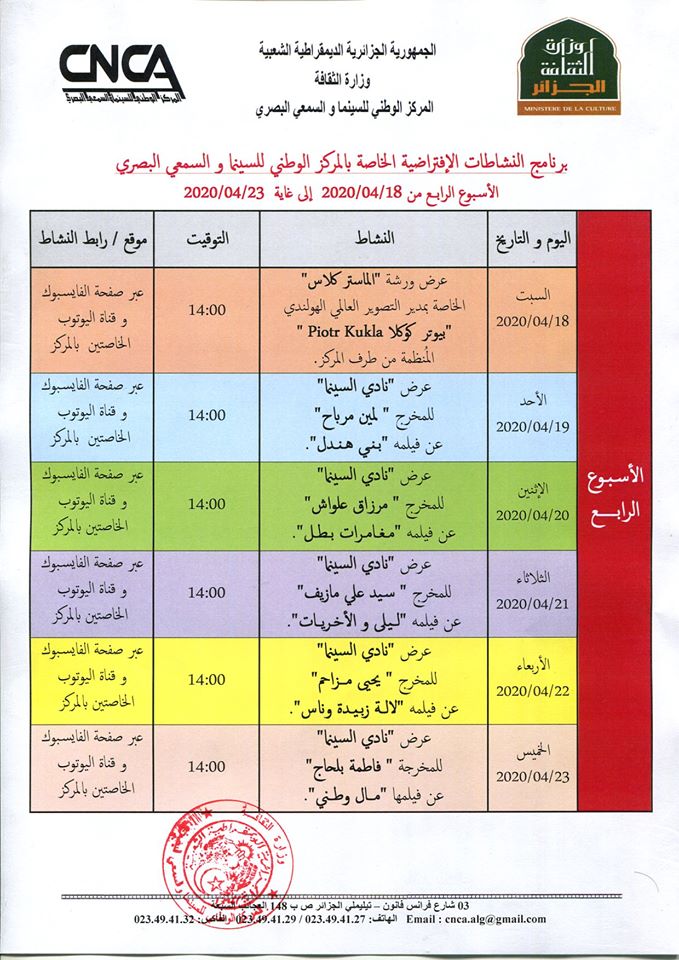 ضِمن البرنامج المُسطر للنشاطات الإفتراضية الخاصة بالمركز الوطني للسينما و السمعي البصري في ظِل جائحة#كورونا_فيروس_كوفيد_19_Corona_Virus_Covid