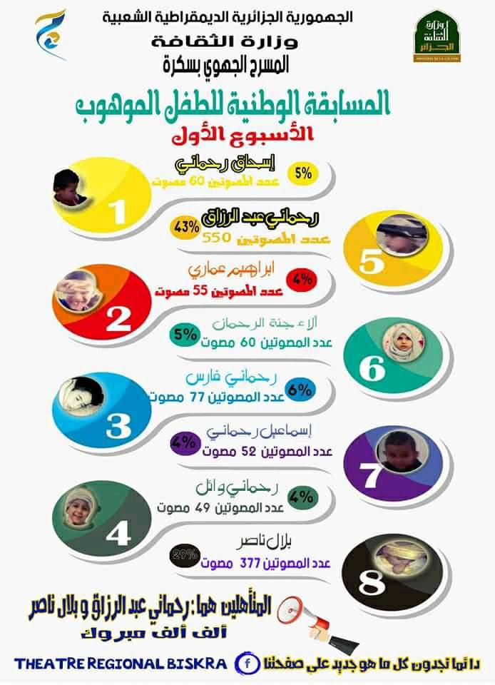 نتائج الاسبوع الأول للمسابقة الوطنية للطفل الموهوب التي نظمها المسرح الجهوي بسكرة